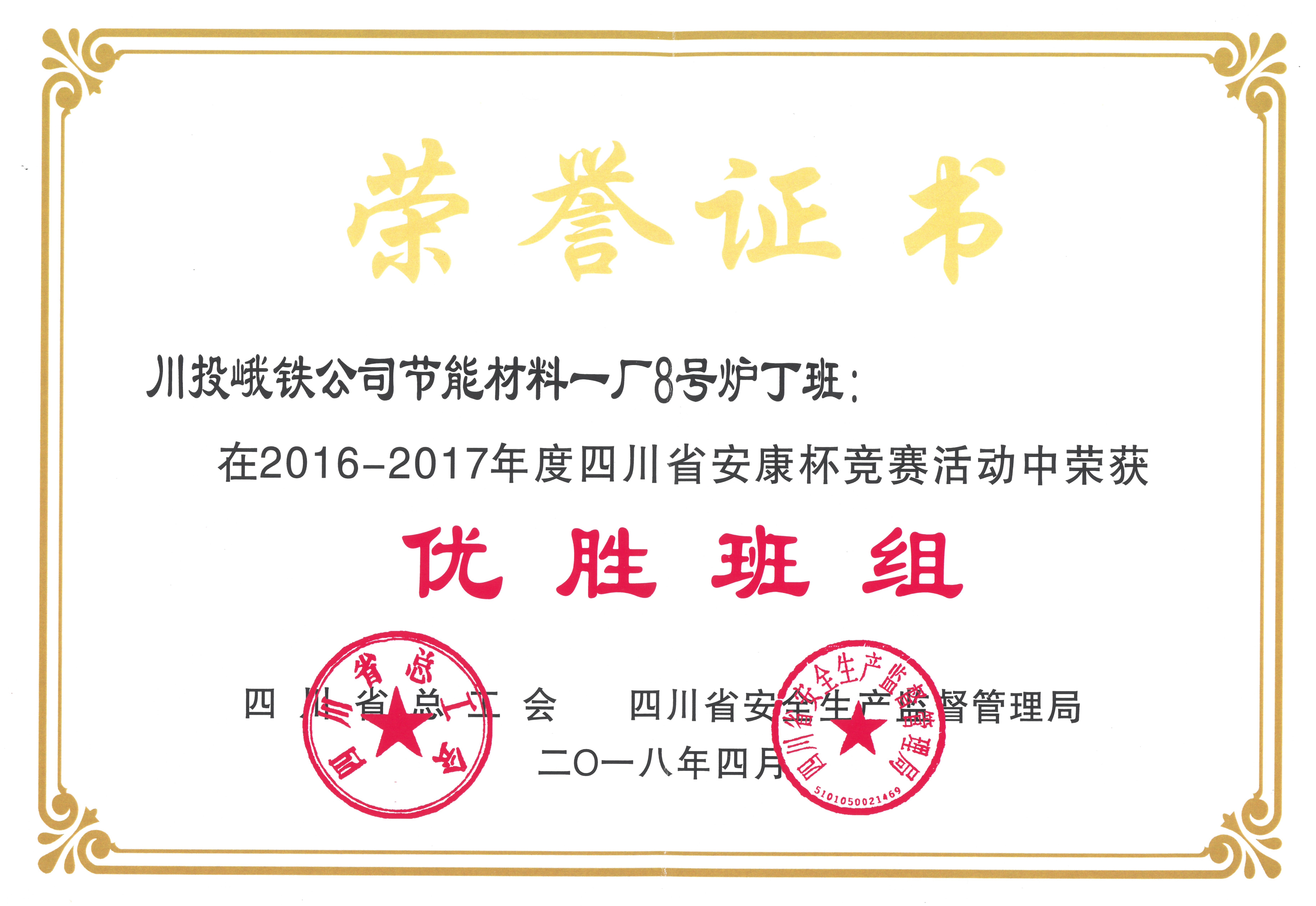 近日,四川省總工會、四川省安全生產(chǎn)監(jiān)督管理局對在2016—2017年度四川省“安康杯”競賽活動中涌現(xiàn)出的先進集體和優(yōu)秀個人進行了通報表彰,公司節(jié)能一廠8號爐丁班獲“安康杯”競賽優(yōu)勝班組獎。