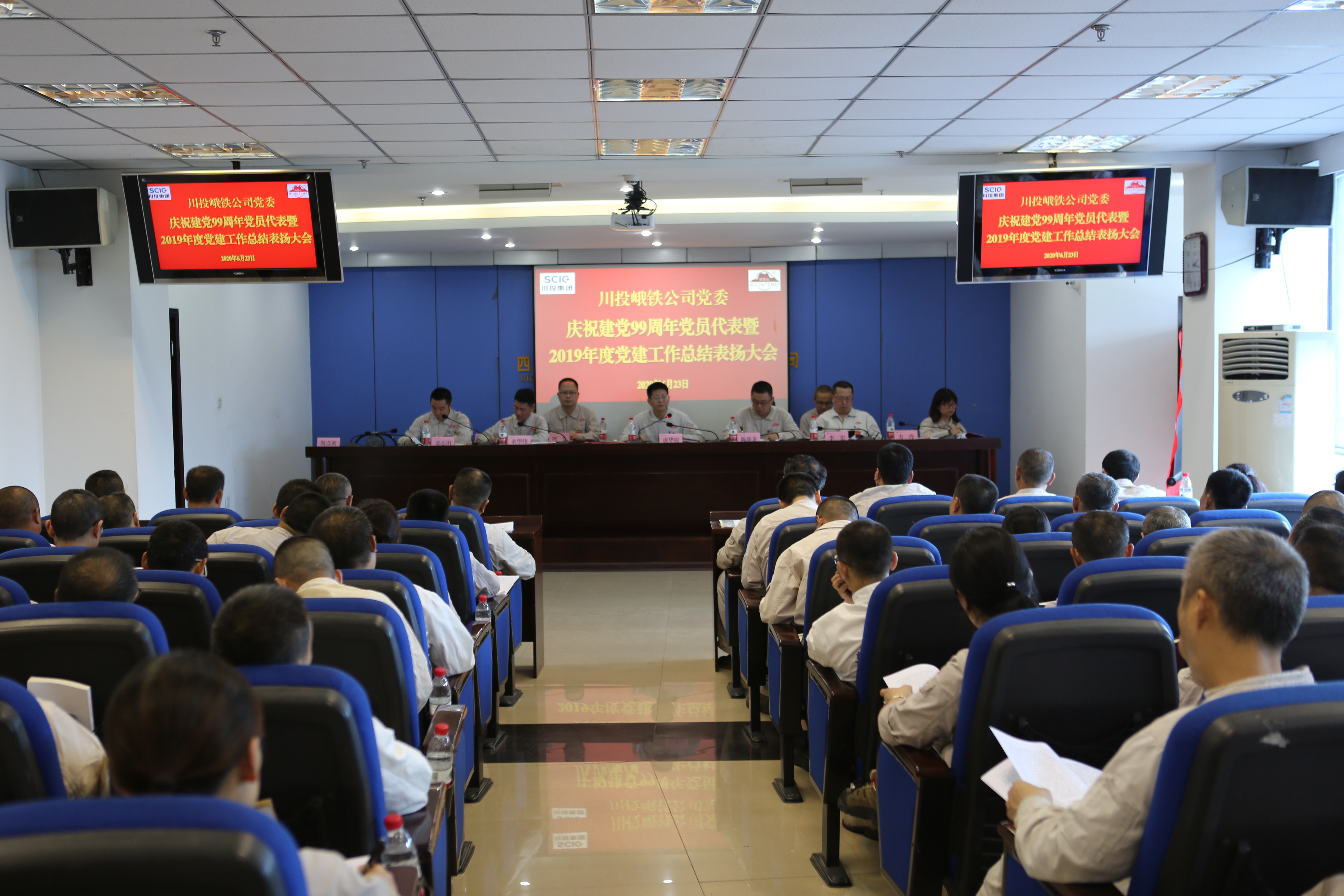 6月23日,在莊嚴的國歌聲中,川投峨鐵公司黨委慶祝建黨99周年黨員代表暨2019年度黨建工作總結(jié)表揚大會在公司1011會議室隆重舉行,47名黨員代表和47名列席代表參加,會議由公司黨委副書記余華偉同志主持。