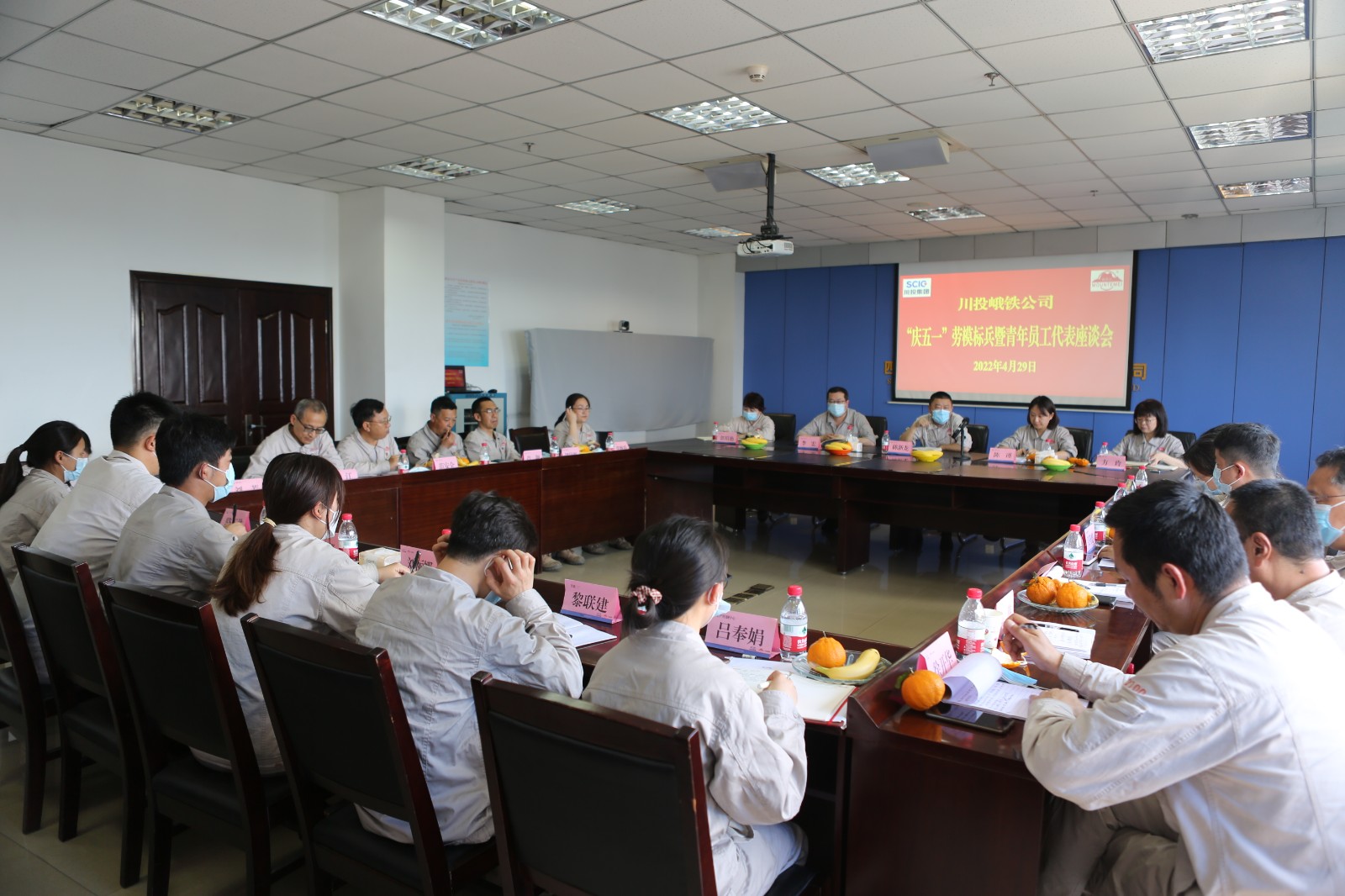 為慶祝“五一”勞動節(jié),進一步弘揚勞模精神、勞動精神、工匠精神,激勵青年員工立足崗位、接續(xù)奮斗,4月28日,川投峨鐵公司黨委副書記、工會主席陳瑾在908會議室主持召開“慶五一”勞模標兵暨青年員工座談會,公司黨委副書記、總經理陳新龍等在家公司領導、樂山市勞動模范、2021年度公司標兵代表、各黨支部負責人及青年員工代表共23人參加。