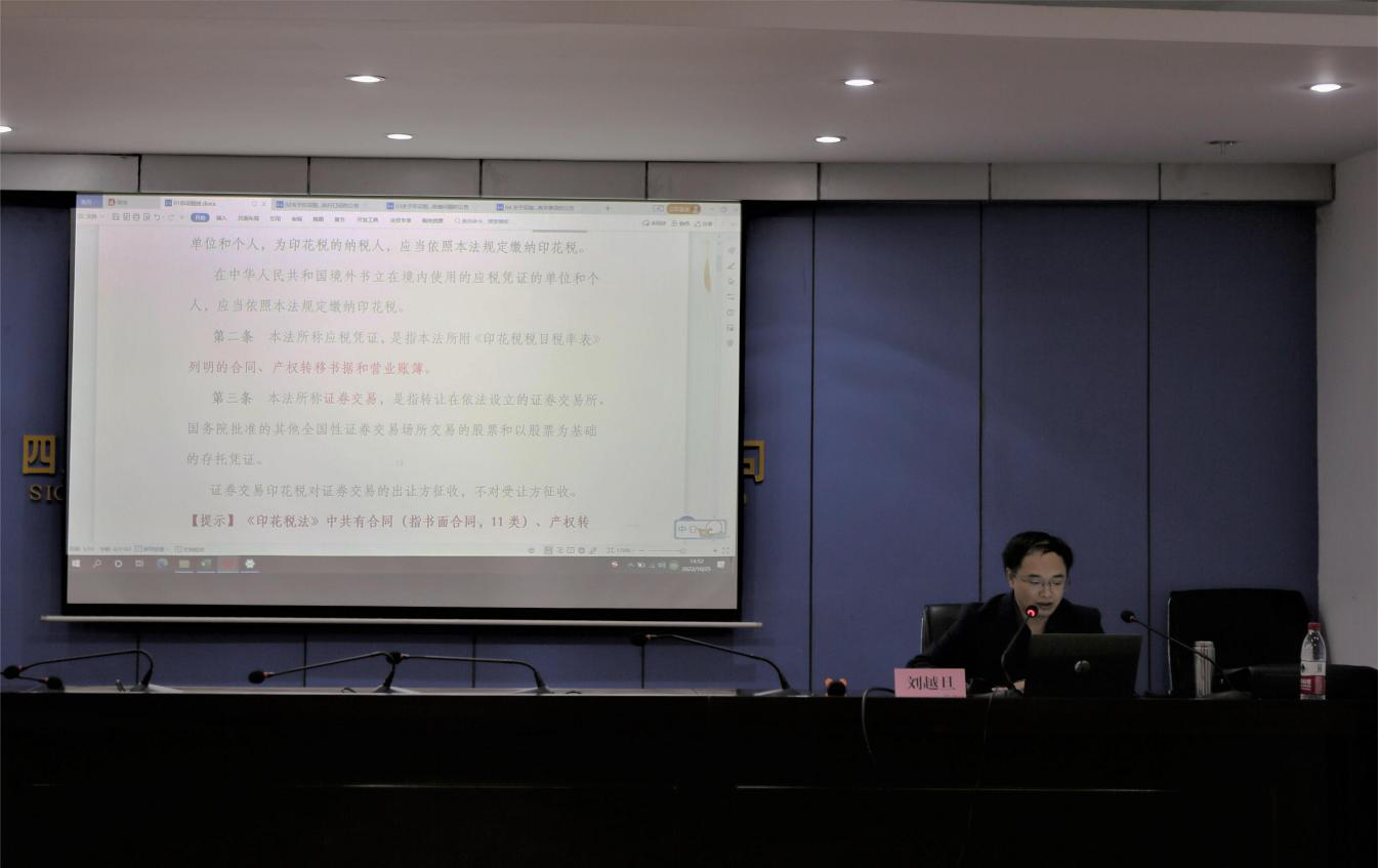 為提高公司相關(guān)部門員工的專業(yè)素養(yǎng),有效提升工作效率,規(guī)范后續(xù)工作中印花稅納稅鏈條相關(guān)職能部門的管理。10月25日,由財務(wù)處牽頭,邀請公司財稅顧問劉越旦在公司1011會議室為全體財務(wù)人員、供銷公司、審法合管部相關(guān)業(yè)務(wù)員進行了印花稅法相關(guān)知識的培訓(xùn)。公司總會計師方玲參加并主持會議。
