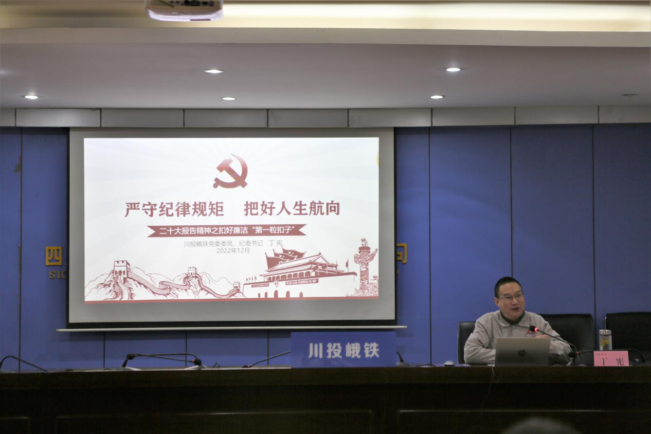 為深入學(xué)習(xí)宣傳貫徹黨的二十大精神,積極踐行習(xí)近平總書(shū)記對(duì)廣大青年提出的“立志做有理想、敢擔(dān)當(dāng)、能吃苦、肯奮斗的新時(shí)代好青年”的殷切希望,扣好年輕干部廉潔“第一??圩印薄?2月13日上午,川投峨鐵公司黨委委員、紀(jì)委書(shū)記丁憲在1011會(huì)議室作題為“嚴(yán)守紀(jì)律規(guī)矩 把好人生航向”的廉潔黨課,公司團(tuán)員青年、黨員共計(jì)43人參會(huì)。