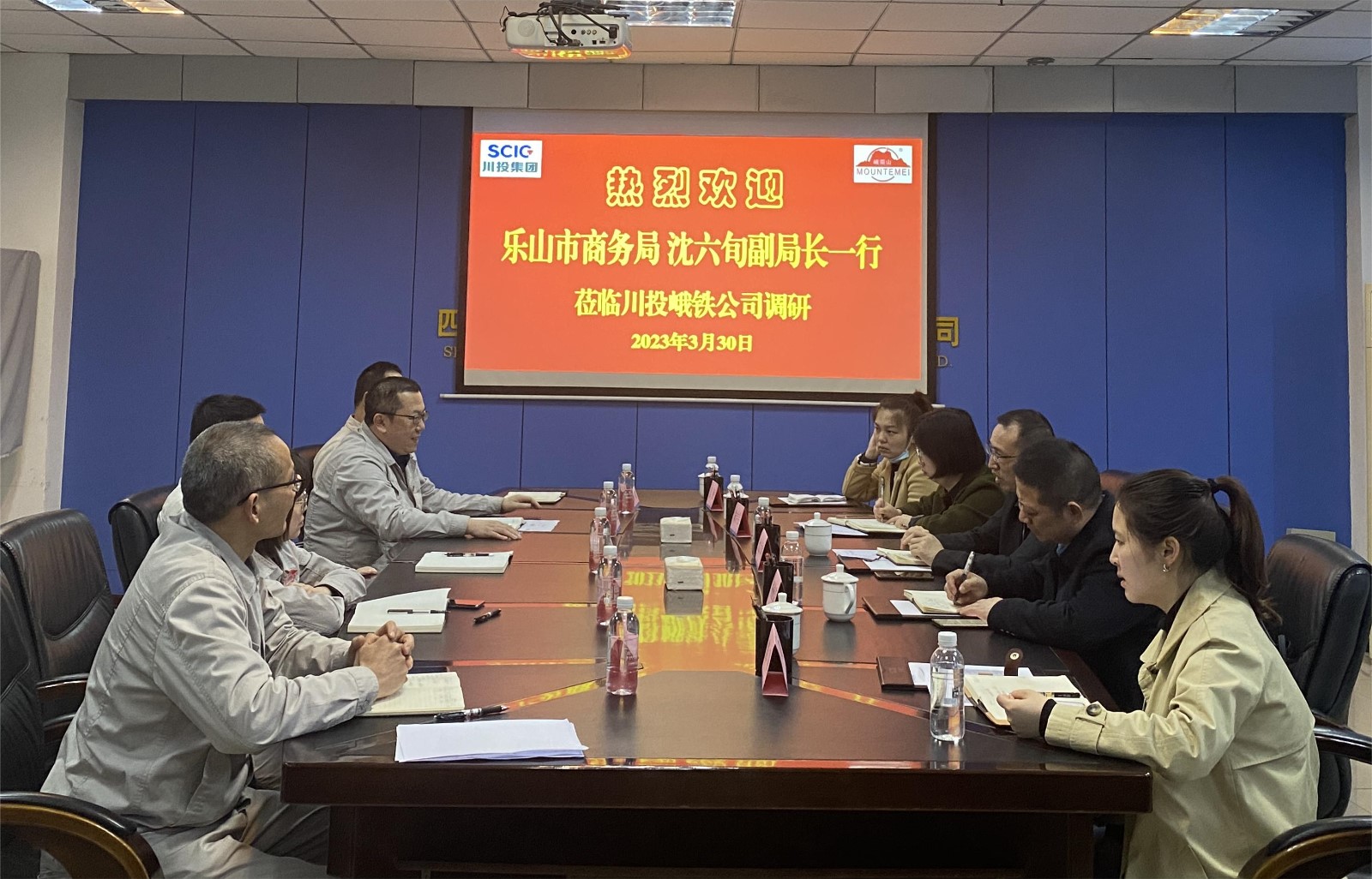 在公司908會議室,沈六旬副局長指出此行的目的是全面把握川投峨鐵公司近年的外貿(mào)經(jīng)營狀況,就如何進一步做大外貿(mào)進口額等與企業(yè)進行調(diào)研交流。陳新龍代表公司對樂山、峨眉兩級商務(wù)局多年來對公司外貿(mào)工作的關(guān)心支持表示誠摯的感謝,并簡要匯報了公司經(jīng)營近況。相關(guān)領(lǐng)導(dǎo)結(jié)合公司外貿(mào)及融資工作實際情況對商務(wù)局領(lǐng)導(dǎo)提出的相關(guān)問題進行了匯報。