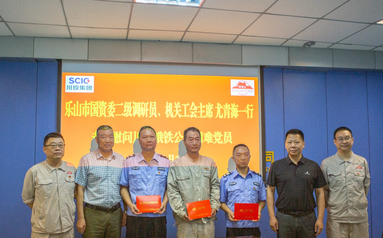 在908會議室,陳新龍對尤青海一行蒞臨川投峨鐵公司走訪慰問表示歡迎,對樂山市國資委黨委長期以來對公司的關(guān)心支持表示感謝,并簡要匯報了公司生產(chǎn)經(jīng)營相關(guān)情況。尤青海向公司困難黨員轉(zhuǎn)達(dá)了樂山市委、市國資委黨委的關(guān)心,詳細(xì)詢問了他們的家庭和生活情況,并為3名同志送上了慰問金,鼓勵他們保持積極樂觀的心態(tài),堅定信心,克服困難。