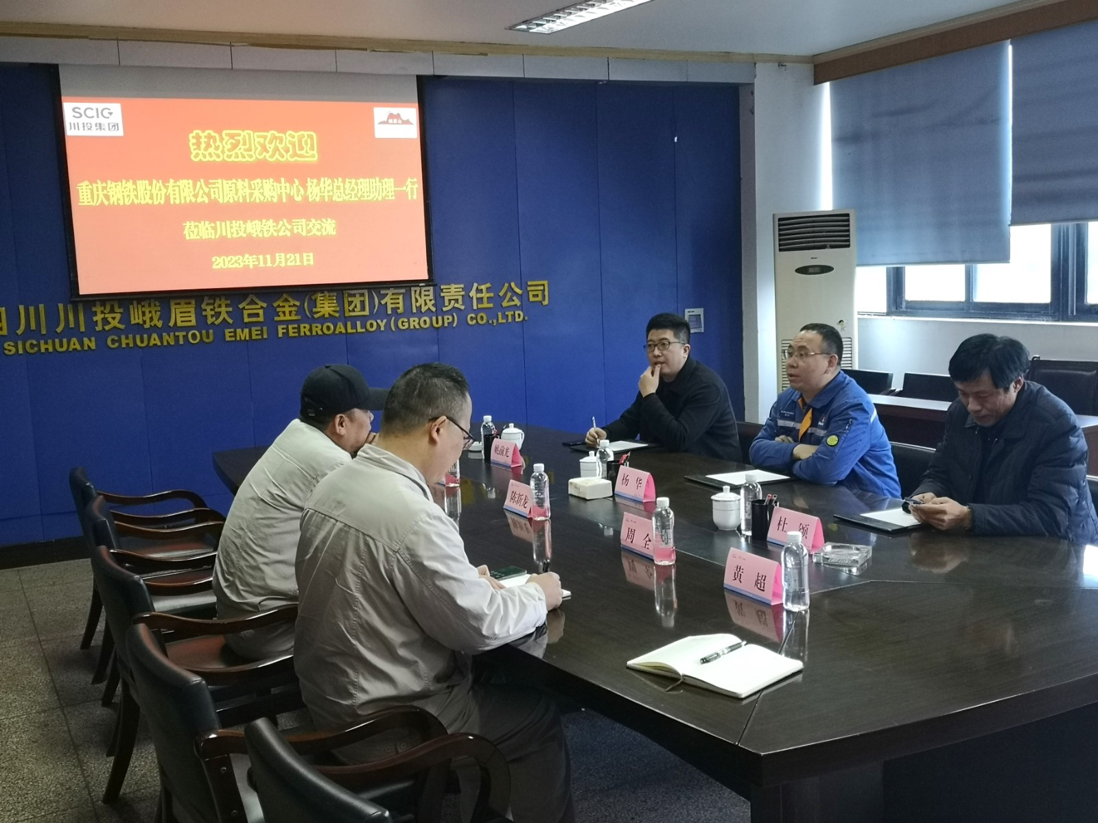 為深化戰(zhàn)略合作,推動(dòng)共贏發(fā)展,近日,重慶鋼鐵股份有限公司原料采購(gòu)中心總經(jīng)理助理?xiàng)钊A一行3人到訪川投峨鐵公司。川投峨鐵公司黨委副書記、總經(jīng)理陳新龍?jiān)?/span>3樓會(huì)議室接待了來(lái)訪客人。
