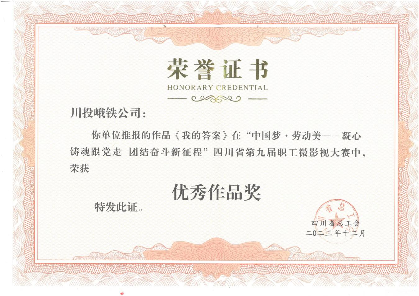 近日,四川省總工會通報了“中國夢?勞動美——凝心鑄魂跟黨走 團結(jié)奮斗新征程”四川省系列職工群眾性主題教育活動獲獎單位和個人,川投峨鐵公司推報的微影視作品《我的答案》和公司職工付小琴演講的《我的師傅》獲得兩項優(yōu)秀獎。