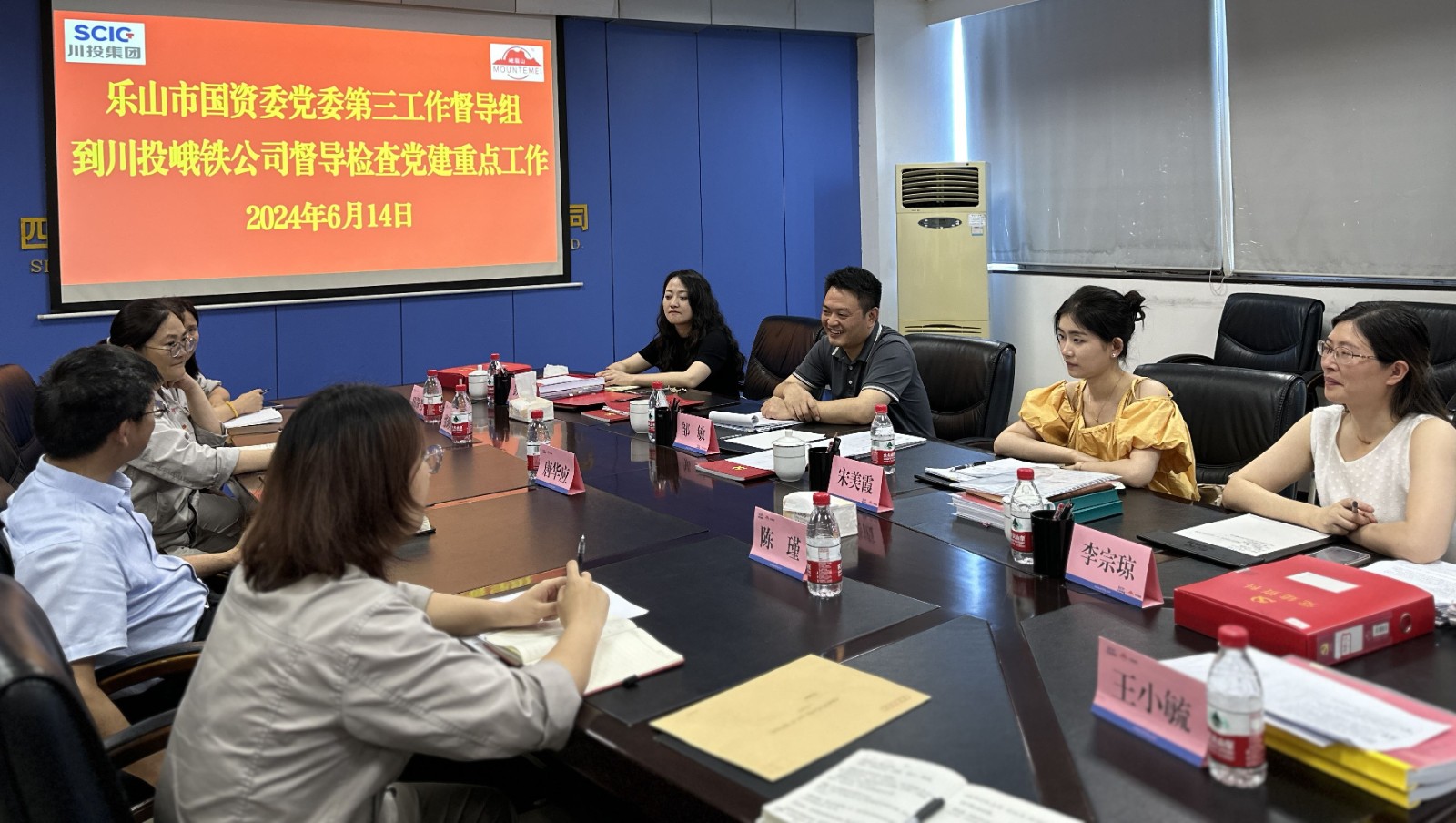 6月14日,樂山市國資委黨建科副科長鄒敏帶隊黨建工作第三督導(dǎo)組到川投峨鐵公司督導(dǎo)檢查2023年度黨建工作問題整改情況并作黨建工作交流,川投峨鐵公司黨委書記、董事長唐華應(yīng),黨委副書記、工會主席陳瑾出席交流會。