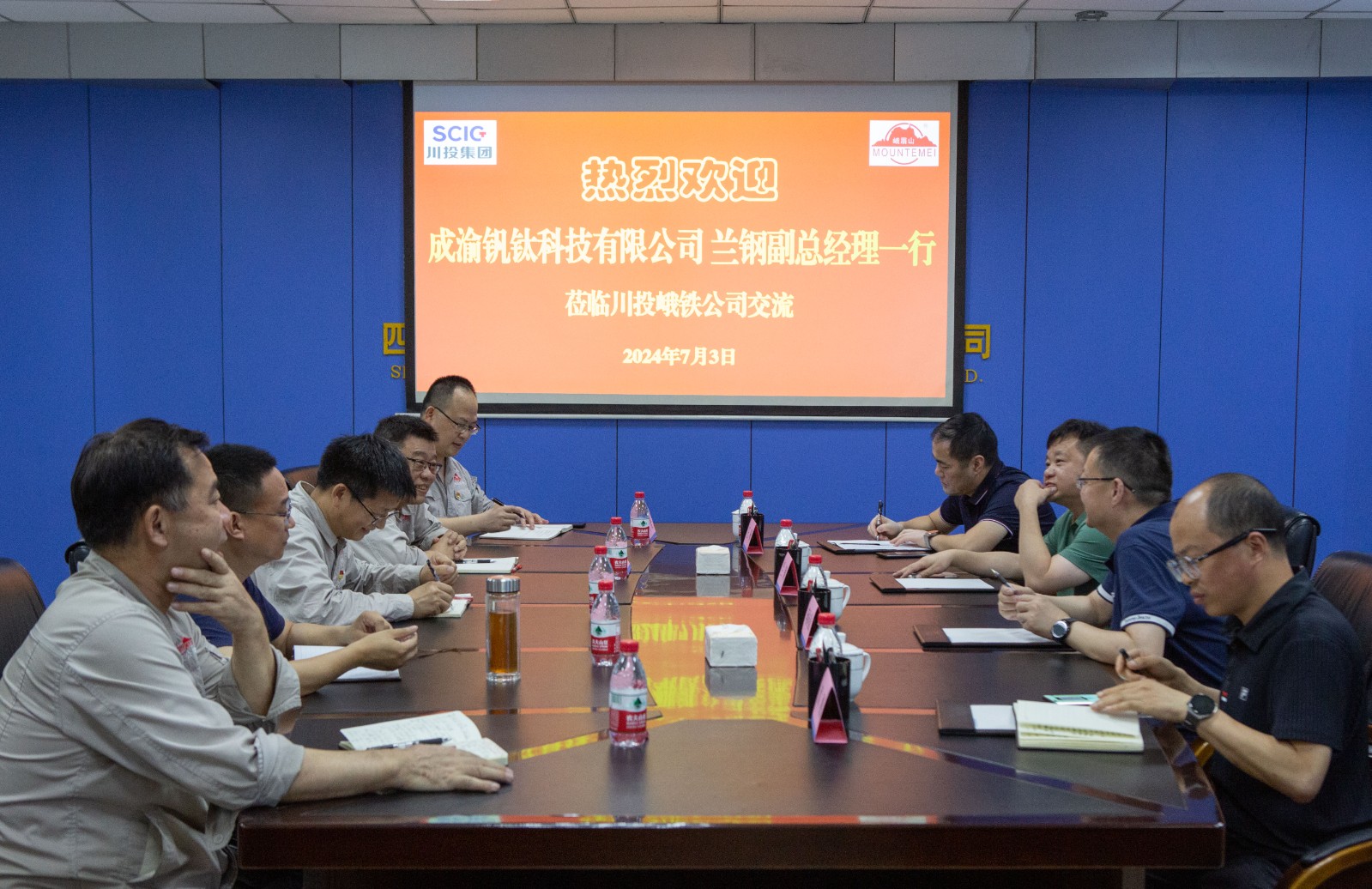 7月3日,成渝釩鈦科技有限公司副總經(jīng)理蘭鋼一行4人到訪川投峨鐵公司,雙方就鐵合金市場(chǎng)情況進(jìn)行了交流探討。公司黨委書記、董事長(zhǎng)唐華應(yīng)出席會(huì)議。