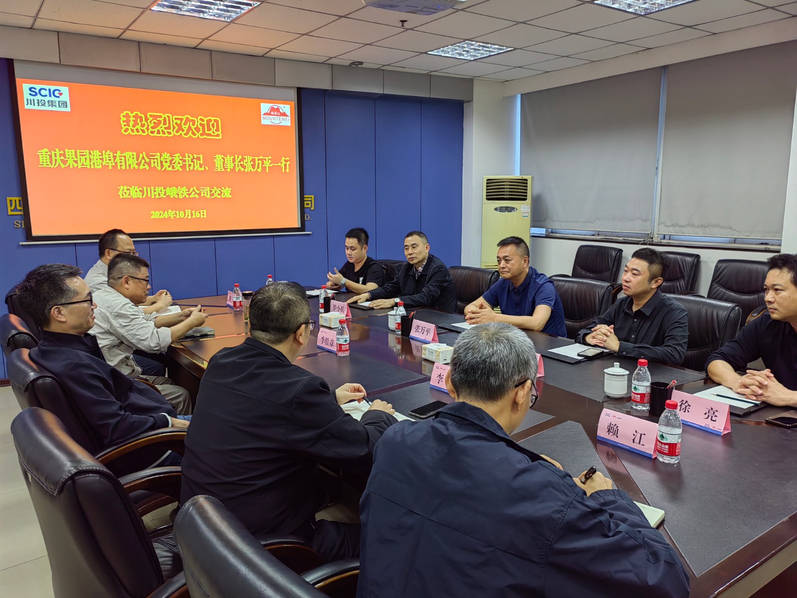 10月16日,重慶果園港埠有限公司黨委書記、董事長(zhǎng)張萬(wàn)平一行5人到訪公司。川投峨鐵公司黨委書記、董事長(zhǎng)李勝章,黨委副書記、總經(jīng)理陳新龍,黨委委員、常務(wù)副總經(jīng)理李宏,營(yíng)銷總監(jiān)周全在908會(huì)議室與來(lái)訪客人進(jìn)行了交流座談。
