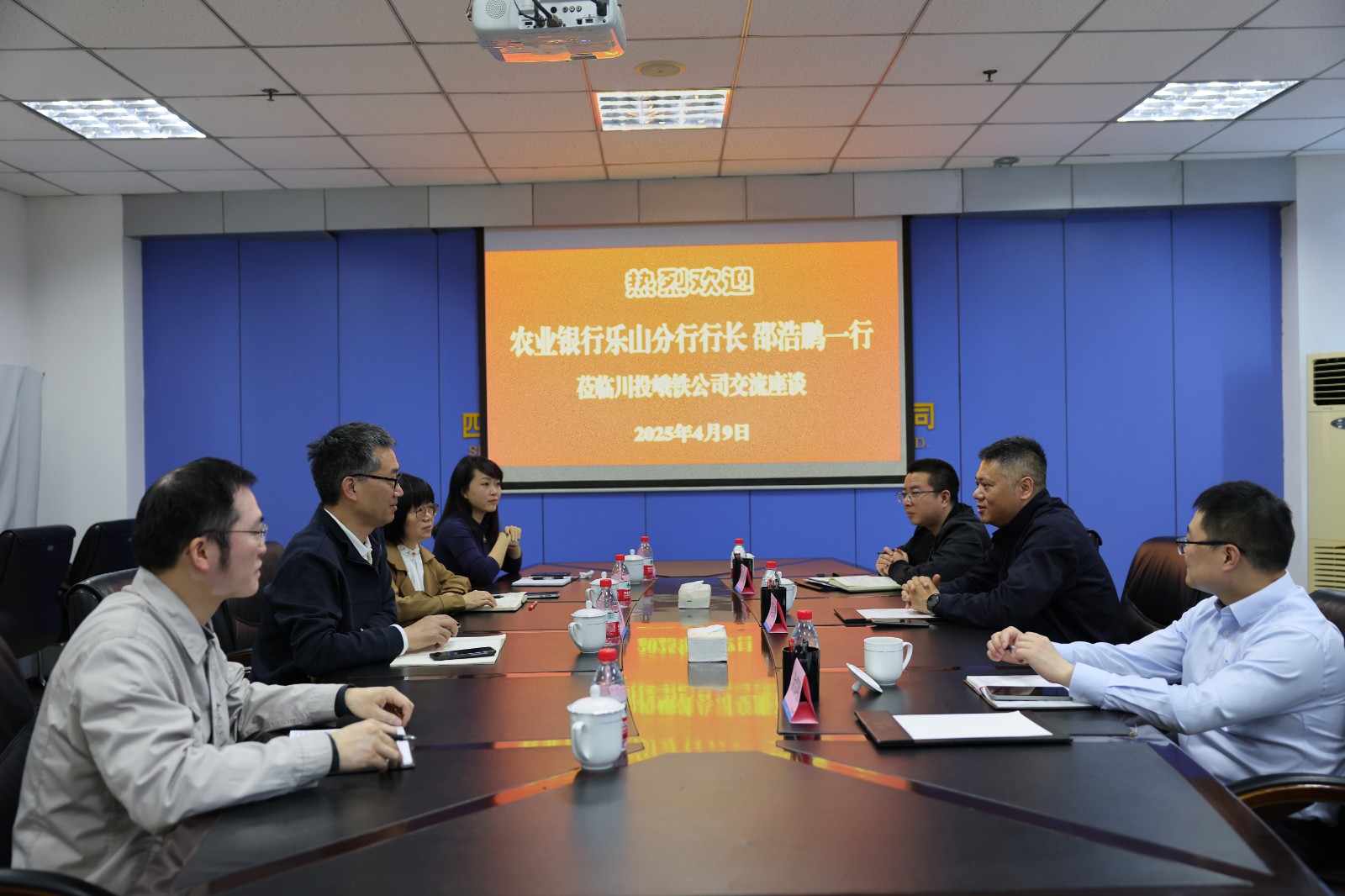 4月9日,農(nóng)業(yè)銀行樂(lè)山分行行長(zhǎng)邵浩鵬率隊(duì)到訪峨鐵公司,公司黨委書記、董事長(zhǎng)李勝章參加交流座談。