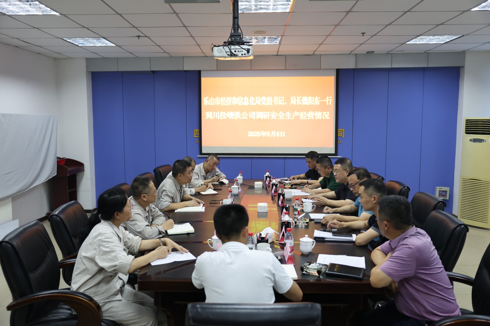8月6日,樂(lè)山市經(jīng)濟(jì)信息化局黨組書記、局長(zhǎng)魏陽(yáng)東一行到川投峨鐵公司調(diào)研生產(chǎn)經(jīng)營(yíng)情況并開展安全檢查,峨眉山市政府黨組成員、副市長(zhǎng)蔡其宏,峨眉山市經(jīng)濟(jì)和信息化局黨組書記、局長(zhǎng)楊武,川投峨鐵公司黨委副書記、總經(jīng)理陳新龍陪同調(diào)研。