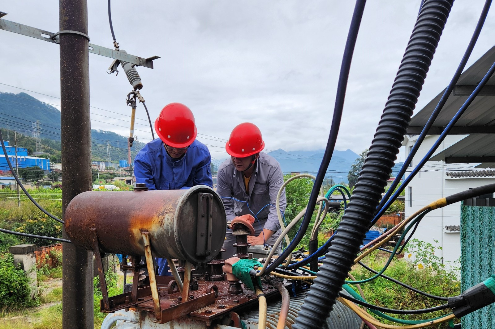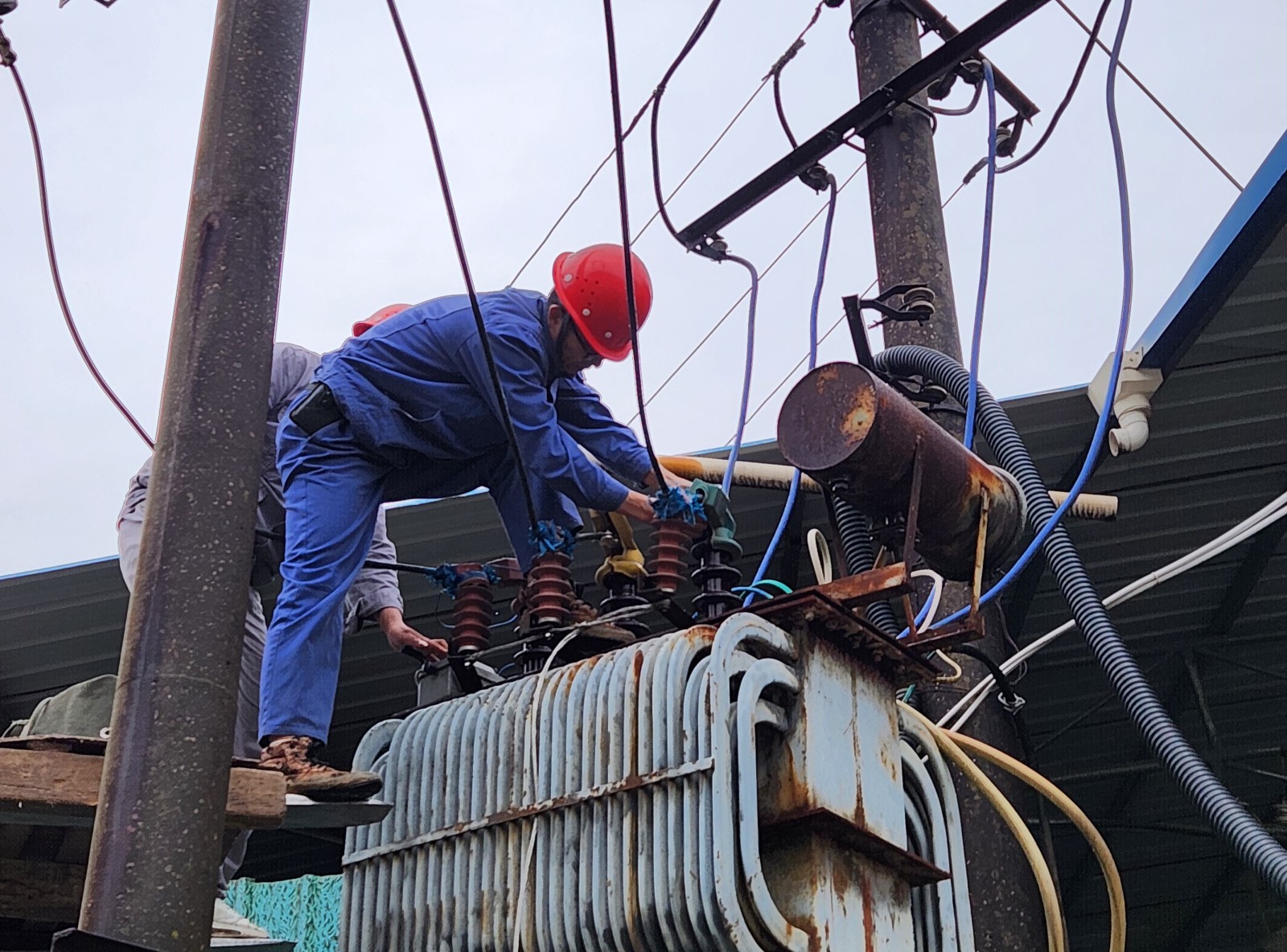 7時(shí)許天微亮,公司立即組織人員對(duì)8.4公里線路實(shí)行分片巡查,同步斷開用電端全部變壓器逐一排查。上午10時(shí),排查發(fā)現(xiàn)采選車間變壓器避雷器因雷擊受損,確認(rèn)為線路接地的直接原因。搶修人員隨即攜帶工具及安全防護(hù)設(shè)備趕赴現(xiàn)場(chǎng)。待雨勢(shì)減弱具備搶修條件后,搶修人員迅速穿戴安全防護(hù)裝備,嚴(yán)格落實(shí)現(xiàn)場(chǎng)安全管控措施,攜帶工具包登上變壓器臺(tái)架兩側(cè),高效更換故障避雷器。經(jīng)過近2小時(shí)緊張作業(yè),新避雷器順利安裝就位,10千伏線路成功并網(wǎng),供區(qū)率先恢復(fù)供電。15時(shí)44分,電站機(jī)組同步實(shí)現(xiàn)并網(wǎng)發(fā)電。